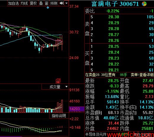 300671富满电子:半年线25周均线支撑。均线系统呈多头排列,该股短期走势相对强于大盘,机构三个月内最新投资评级为增持