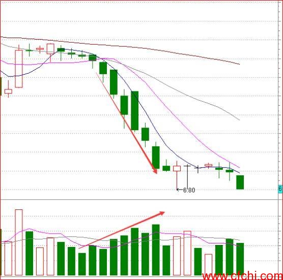 在股价已经持续下跌过一段较长时间后,跌市已近尾声时,抢反弹要选无量空跌股,而不能选择放量下跌股。