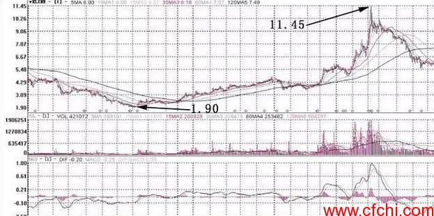 (8)上涨过快的股票,除非经过长期的震荡整理,且量价配合理想,并刚刚进入庄家的拉升阶段,否则当心“震荡”或反转。快得很有“气势”的,可能是短跑黑马。