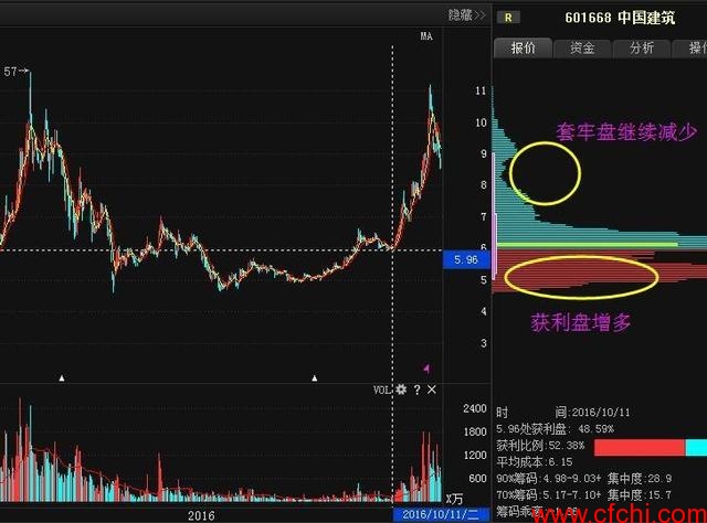 2、洗盘阶段,股价在中位,获利筹码在逐步的增多,套牢盘逐步的减少,筹码在逐步的转移。
