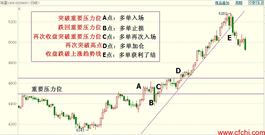 1、向上突破重要压力位,多单入场; (收盘跌回重要压力位下方止损)
