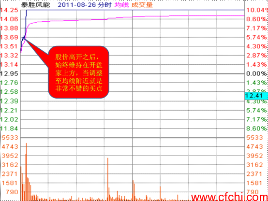 3.高开之后股价一直在开盘价上方运行,回踩分时均线是比较好的介入点位。