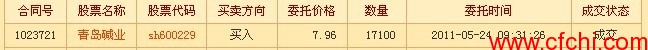 参赛选手“blue_liyue” 5月24日出击600229青岛碱业