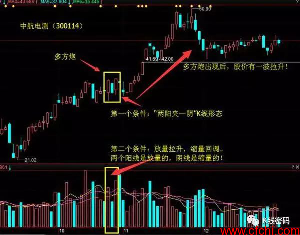 (5)多头炮失败形态比例很高,研判多头炮时要综合其他技术分析手段。学习更多K线知识尽在微信公众号:K线密码。
