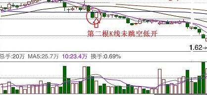 2、(曙光初现)第二根K线必须跳空低开