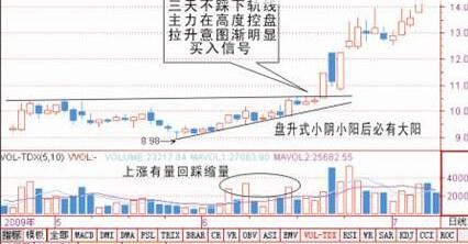 对于一般稳健投资者来说,或者是不喜欢追涨,选择此类小阴小阳蓄势待发的图形,当发现时逢低买进持股不到一周必会大阳突破,享受上升浪赚钱的乐趣。