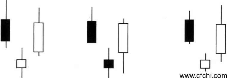 在对行情走势进行分析时,单根的基本形态并不能准确地判断行情,投资者应该根据多根基本K线形态组合起来分析,从而判断行情见底、见顶、上涨或者下跌,以下组合为行情见底的K线信号。