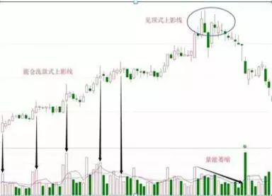 上图将震仓洗盘式上影线和见顶式上影线很好的反映了出来。