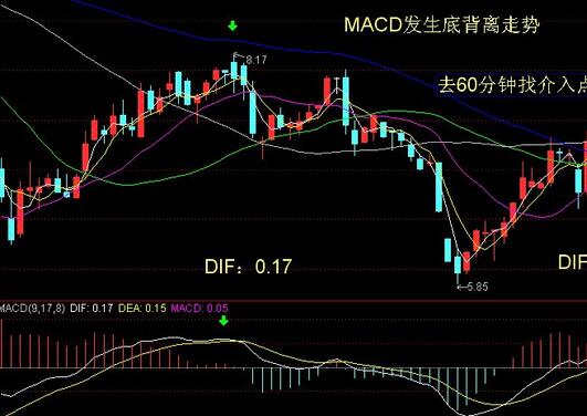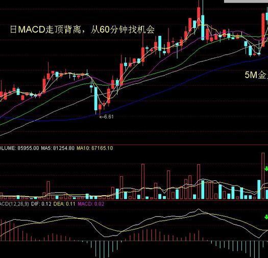 1, 顶背离:当MACD的白色线处于高位,并形成一峰比一峰低的两个峰,而此时股价却一峰比一峰高。