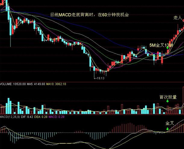 关于MACD走底背离抓住第一次放量,这次只介绍一种情况。那么其他走势抓住第一次放量的介绍放在股友山寨的私密区内,不是该圈子里的人是看不到的。