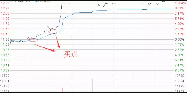 3. 买股时要需要确认备选个股处于分时均线上方,分时均线是日内判断个股强弱的基本条件,如果你备选的个股早盘开盘后长时间(半个小时)都几乎运行在分时均线下方就证明,个股买盘意愿不强,短线就需要考虑放弃或换股了。