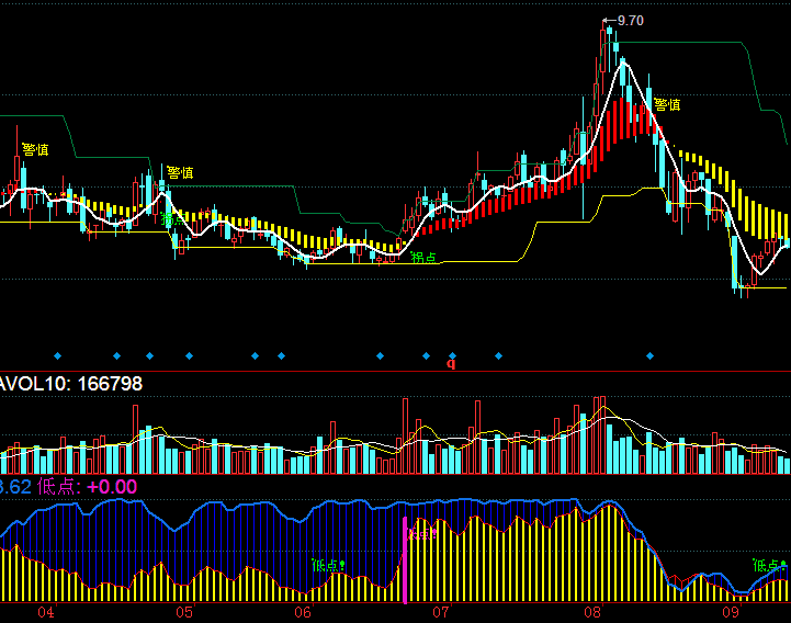 第一/趋势投资:大盘是决定能否做短线的前提,大盘不好,必须坚持持币;大盘转好,结合市场热点才有可能取得良好的收益。所以只要出现大盘跳空底开2%以上,所有的操盘计划全部取消。我们的黄金线确保趋势向上,目前没有站上黄金线,继续持币观望为好。 第二/周期操盘:在上涨和下跌周期应该采取不同的操盘策略,在下跌周期,一般都会在周三形成最低点,所以最佳买进时间为周三的下午收盘前一个小时内或者八卦箱体的强支撑位埋单,选择热门股介入都会有不错的收益;在上涨周期,一般都会在周五前后冲高回落,所以最佳买进时间为周五的下午收盘前一个小时内,最佳卖出时间为周二上午冲高卖出。 第三/择机买进:买进时间一般最佳为收盘前一个小时,选择股价维持在全天最高点附近的股票逢底介入;开盘后1个小时以内是卖出股票的好时机,15分钟以内不能买股票,但是可以按照八卦箱体的下强支撑位埋单,一般冲高后都会回落,试探支撑位。 第四/不赚钱不补仓:做短线绝对不能因为套住而改做长线,不管你是什么原因买入的,任何一只股票,不赚钱绝对不补仓,在任何时间亏损达到5%以上、10%以内,收盘前10-30分钟必须卖出50%! 第五/坚持止损:不管是机构推荐的,还是有很强的利好消息,在任何时间亏损达到10%,必须立即止损,无条件全部卖出! 第六/控制仓位:短线参与的资金不能过重,建议控制仓位在20%以下,并且持股不超过3只。 第七/坚持止赢:大盘趋势向上的时候,我们的止赢线是30%;大盘不好的时候,我们的止赢线是15%.建议赢利达到10%立即卖出一半。 第八/现金为王:牛短熊长,熊市中要尽量持币,不要频繁的买股,不要去抄底。严格控制仓位在半仓以下,甚至空仓。
