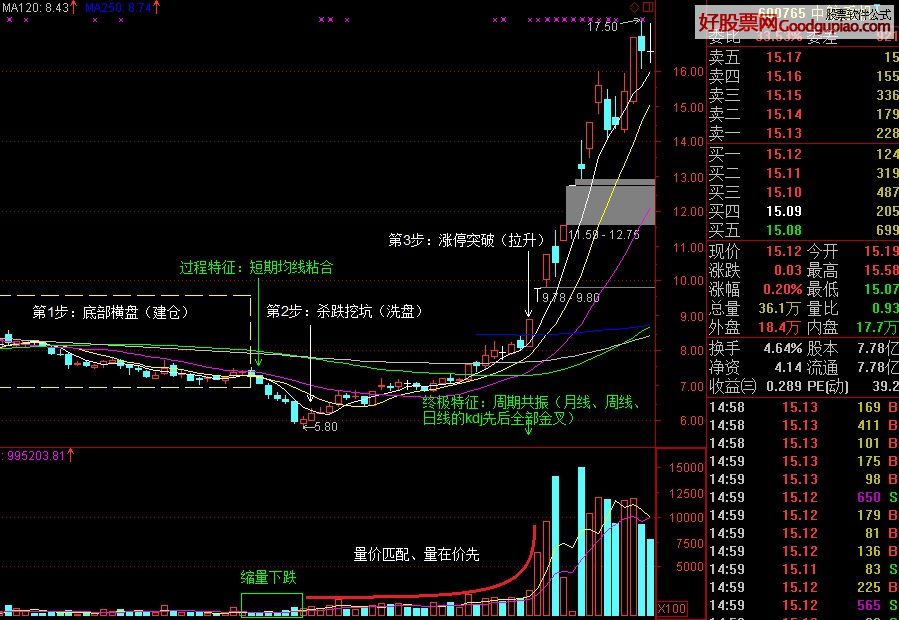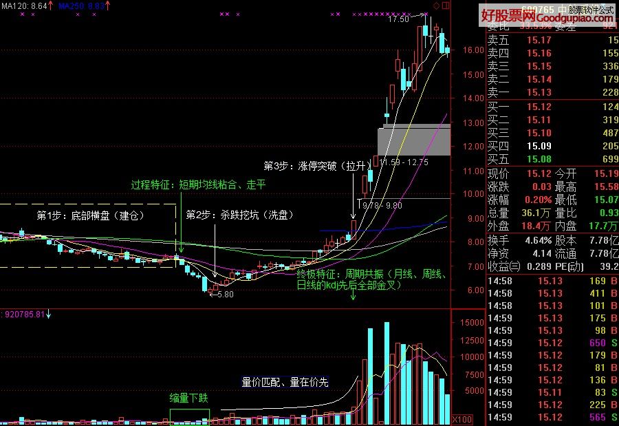 第1步:底部横盘(建仓)。他们提前很长时间就知道某只股票会有大题材,便开始在底部稍无声息地耐心吸筹,人弃我取。
