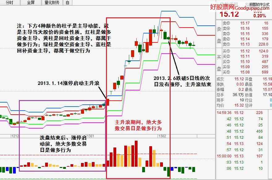 涨停启动主升浪后,做多行为越持久、越狂热,行情级别就越大。资金面的情况,用博尔系统来看,一目了然,还是以中航重机(600765)为例: