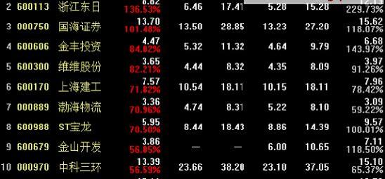 1,002471中超电缆,2011.9.5日,该股从相对低位放量启动,当天以涨停板报收,一阳穿四线,走出了强势芙蓉出水的走势,隔天股价分时图形低开四个点以上,股价盘中再次放量震荡走高,最终再次以涨停板价位报收,当天振幅14%以上,走出了标准的登天梯走势,随后三天股价惯性涨幅10%以上。