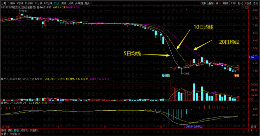 1.短期均线组合有(5日均线、10日均线、20日均线)和(5日均线、10日均线、30日均线)两种组合