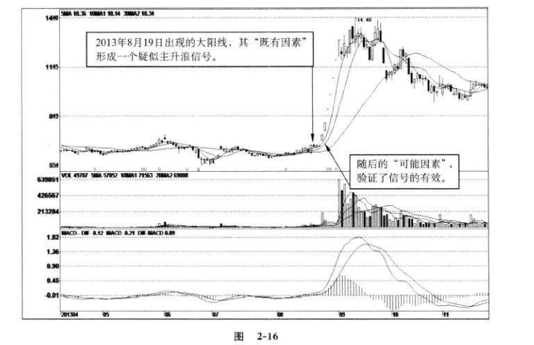 从一个可疑信号成功过渡为一个有效信号,原先的主升浪信号得到强化,构成有效的主升浪信号。