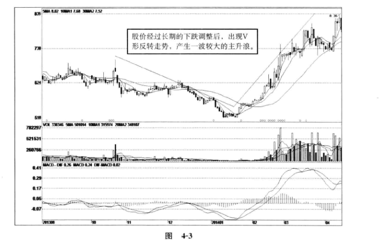 有时候在板块联动或大盘带动下,也会发生主升浪行情。“井喷”式主升浪在启动之前没有明显的征兆,例如,大幅下跌后的V形反转、长期低迷调整后的突然拉起,短线游资庄家的突然袭击以及突发性利好消息的发布等情况下产生的主升浪。