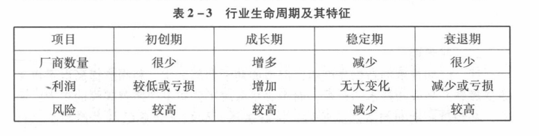 任何一个行业一般都有其存在的寿命周期,由于行业寿命周期的存在,使行业内各公司的股价深受行业发展阶段的影响。每个行业的发展都可分为4个阶段,分别是初创期、成长期、稳定期和衰退期,只是不同行业发展的各个阶段的时间会有差别,但各个阶段的特征对不同行业来讲一般是类似的(表2-3)。