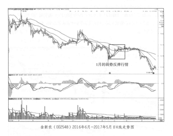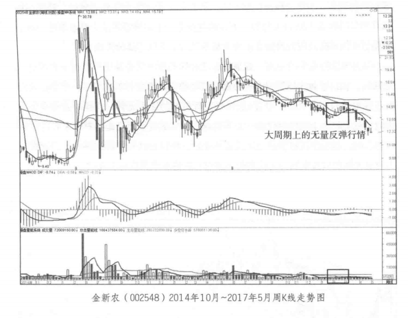 唐人神周线的强势是造就它与金新农后期走势完全不同的根本原因。在江氏交易天机的体系中经常会提到“强者恒强”这个词,然而很多学员和读者对该词的理解还处于“听说”的阶段,根本没有达到“知道”,更别谈“做到”和“悟到”。唐人神后期强势在于周线的大周期还处于多头形态中,而金新农的周线已经是空头形态。