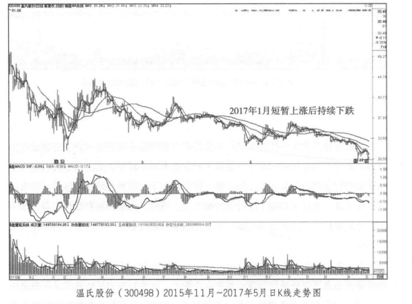 从2015年11月2日上市以来温氏股份是在市场中仅有的几只没有享受过次新股福利的股票,上市后股价持续下跌,从上市首日最高价61.58元每股,到2016年12月30日的收盘价35.22元每股,下跌幅度接近一半。该股还没有被炒作过,对于偏爱创业板和次新股的投资者来说无疑是遇到了千载难逢的大机会。