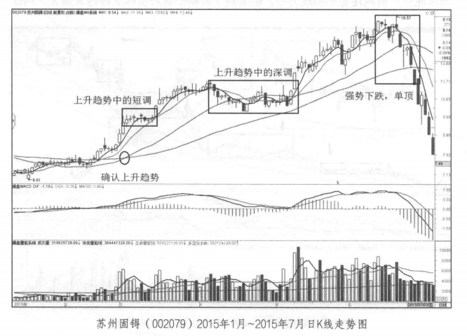 上升趋势运行的中后期,股价调整的深度也会加大,之前趋势中的短期回调不会破坏生命线,但是此时的深度调整会带动生命线逐渐走坏。