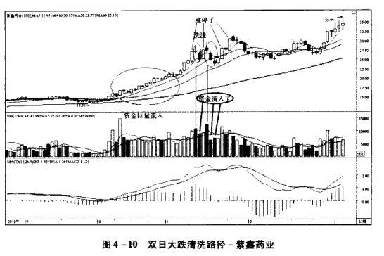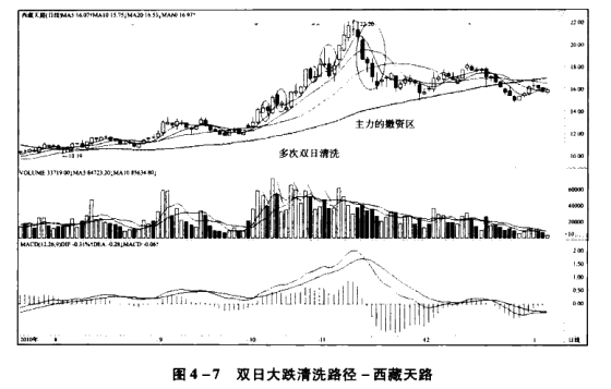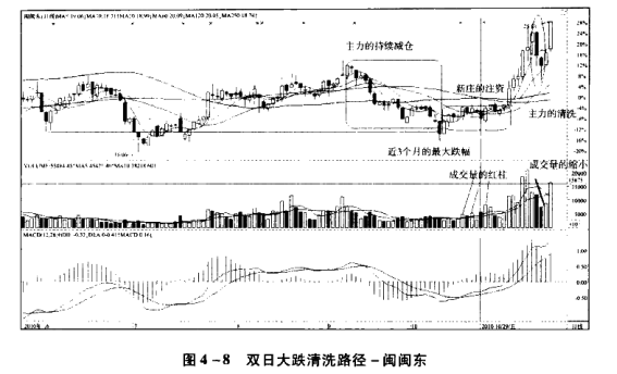 单日双日清洗经常伴随着涨停板或较大的涨幅,可谓涨停板的最后清洗。单日双日清洗和主力的撤资有着一些相似之处,即都是股价跌幅,资金流出。