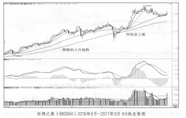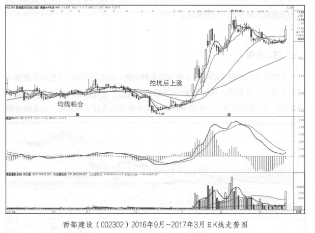但是在大环境走好时,个股还能够独善其身控制住上涨节奏,也是一种强势的表现。早在2016年12月,西部建设就先于板块指数走出了向下破位挖坑洗盘的行情,待板块指数下跌到位时,西部建设抢先涨停,成为丝绸之路最后一波加速上涨的强势股之一。