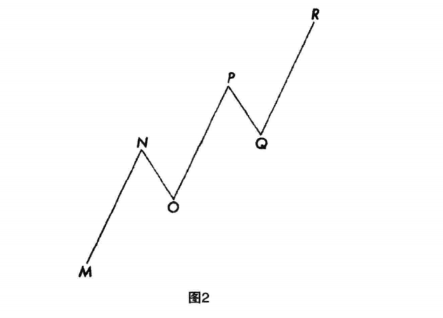 从图上可以看到,从M到N成为从M到R的5浪运动中的1浪。以此来推,从M到R的波浪运动也将会成为下一个更高级别浪级运动中的1浪。