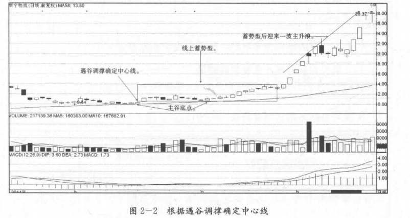 选取谷底点,用遇谷调撑技术确定中心线。如新宁物流(300013),见图2—2。