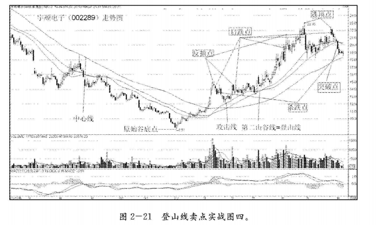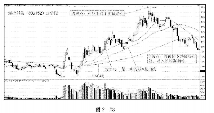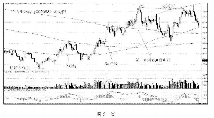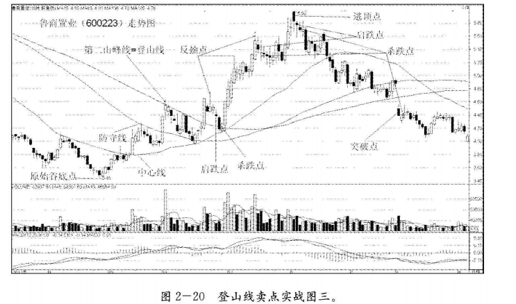 股价在登山线上形成阶段性的峰顶点后,在回踩登山线途中或向下跌破登山线后的任何一根K线。