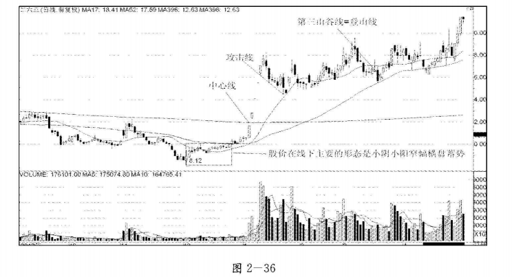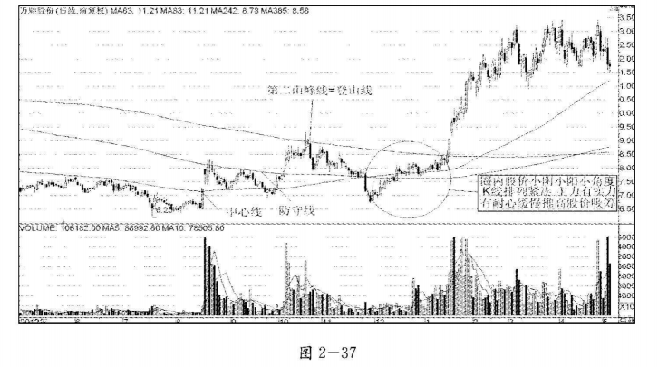 1.股价放量有效突破某条山峰线前,或回踩某条山谷线时,股价在线下的运行形态。