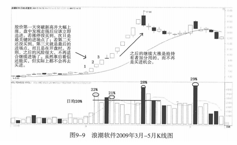 若次日股价又迅速涨停买不到了,此时在第三天开盘后就必须迅速果断地买进,甚至在集合竞价时就要进场参与。