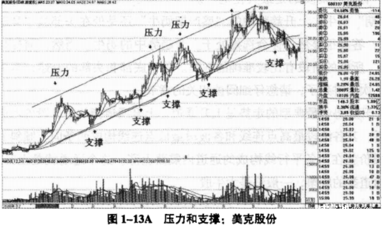 (1)上升通道的上轨是波段压力线,下轨是波段支撑线。股价遇到压力线会自然回调,遇到下轨会自然反弹。