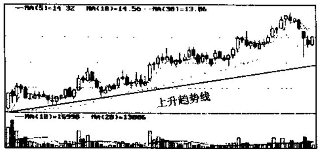 在股市中人们对趋势线有一种形象说法,叫做一把直尺闯天下。意即你只要有一把直尺就能画出趋势线,就能看清股价运行的趋势,做到在上升趋势中看多、做多,在下降趋势中看空、做空。这样就能在股市中把握住一些大的机会,少犯一些原则性的错误,从而就有可能成为股市中的一个大赢家。