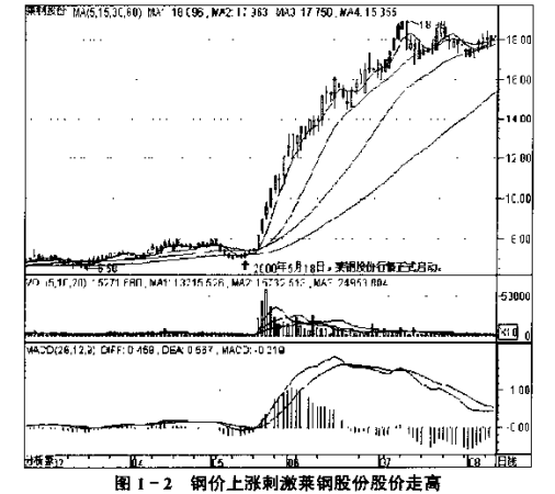 如马钢股份(600808)、 莱钢股份(600102) 在这种背景下股价持续攀高,马钢股份翻了一番有余(最大涨幅为127%), 莱钢股份更是翻了两倍多(最大涨幅为247%)(见图1-2)。石油类公司和铝业公司也都在这轮经济启动中受益良多。