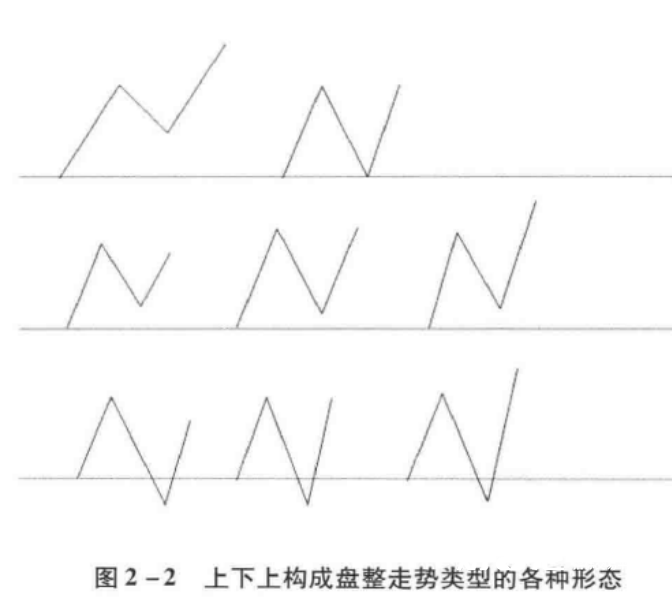 第一种,5分钟级别上+5分钟级别下+5分钟级别上,就构成了以下几种盘整走势类型(如图2-2所示)。