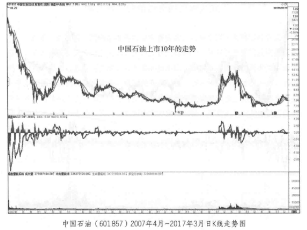 通过在相同时期上证指数和中国石油走势的对比可以看出,在2014年和2015年的牛市中,中国石油的走势远远弱于市场平均水平。