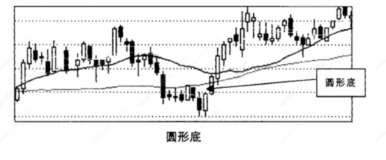 圆形底是一个比较长的筑底过程,这时候K线的形态像一个平缓的半圆,通常这种筑底形态比较容易识别。