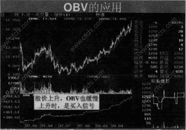 3.洗盘期间,判断成交量变化的其他指标也会出现一些明显特征。如出现巨阴线时,股价均量线5日均线和10日均线仍然是向上运行的态势,说明主力在增仓,后市仍可看多。此外还可以结合OBV来看,股价上升而OBV线下降,说明买盘人气不足,股价可能还会跌下来;股价下降而OBV线上升,则表示买盘很旺盛,股价也许会止跌回升;OBV线缓慢上升,说明买盘人气在逐渐增强,已发出买进信号。
