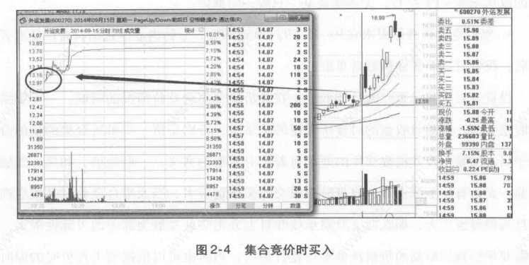一般地讲,如果一支股票在前一交易日是上涨走势,收盘时未成交的买单量很大,当天集合竞价时又跳空高走并且买单量也很大,那么这支股票承接昨日上升走势并发展为涨停的可能性极大,此时需要果断地以略高的价格挂单参与竞价买入,当然也可以依据当天竞价时的即时排行榜进行新的选择,以期捕捉到最具潜力的股票,获得比较满意的投资效果。