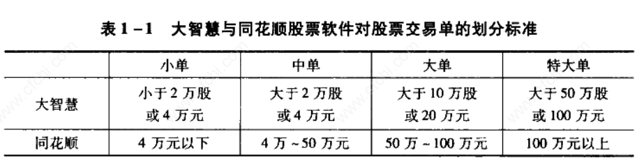 可见,在大智慧软件中对资金额和成交单股数提出了严格要求,而同花顺只是对资金额提出一个要求范围。