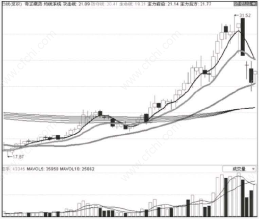 均线理论是非常重要的,它不仅代表某—时点上股价的平均成本,而且代表着股价的平均成本的变化。代表当曰股价的K线上下波动比较大,比较频繁,不容易看出趋势。但是平均成本代表的是某一段时期内的股价的平均成本,把平均成本与当曰股价进行比较,就可以看出成本的变动。当均线开始逐渐抬高股价时,说明买入成本在逐渐抬高,获利者相对增加,于利益的驱使,会有越来越多的获利者出售手中的股票获利了结,这时越向上卖盘越增加,压力越大;同时由于买入成本的抬高,短期内如果股价要继续上张则需要更多资金、更强烈的买方意愿来支撑。所以当资金不足、买方意愿下降时,由于上方压力过大,导致股价下跌。