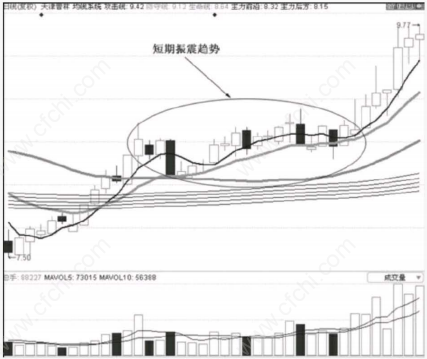图为短期震荡趋势,是由短期均线震荡交叉形成的,代表的是短期震荡趋势。