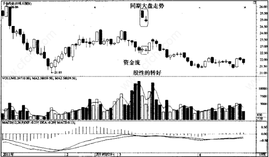 判断股性的好转有两个很重要的标志:一是资金量流出的较少或减少,股价出现十字星;二是资金量流出的较少或减少,股价出现上涨走势。
