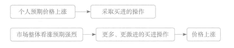2.人们预期未来价格会上涨(下跌),所以人们采取买进(卖空)的操作,导致价格上涨(下跌)。