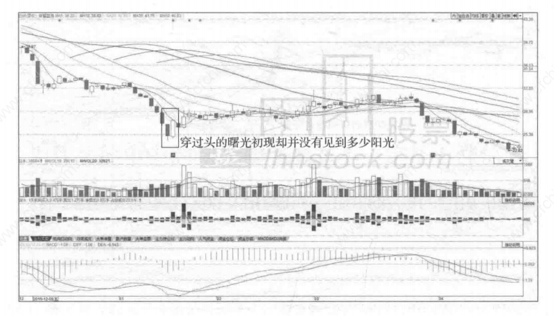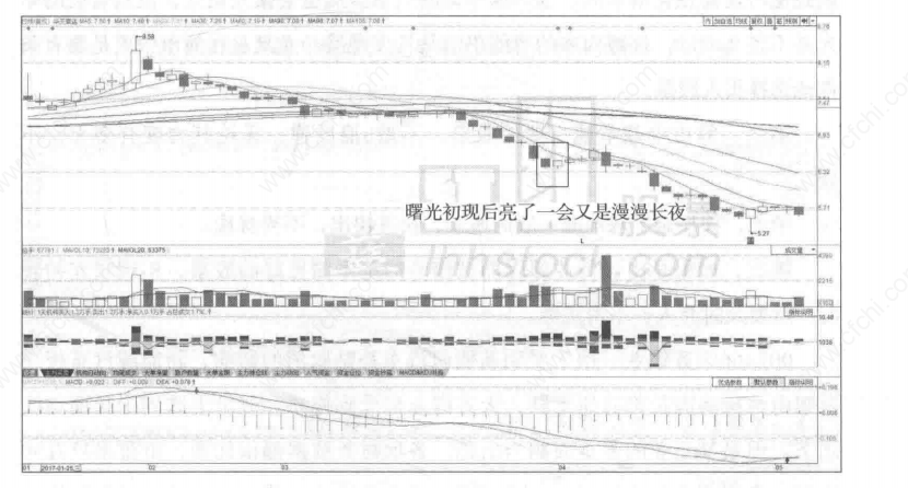 所以,单从技术面去判断曙光初现后就有阳光并不是十分可靠,在技术面已经到位时还需结合基本面,基本面不好的股票虽然也会曙光初现,但是后面的阳光并不怎么灿烂,接踵而来的可能仍旧是长夜漫漫。尤其是在熊市中更是要有条件地选择买入股票。