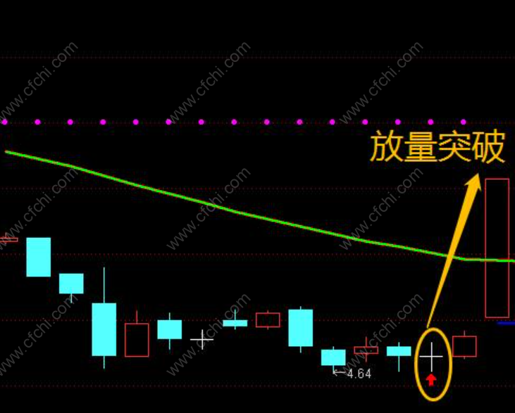 (2)下跌途中放量连收小阳,需谨防主力构筑假底部,跌穿假底之后往往是新一轮跌势的开始。