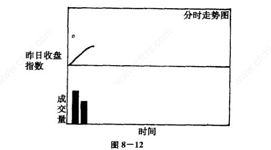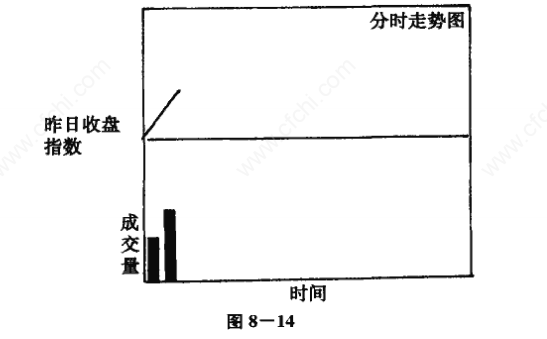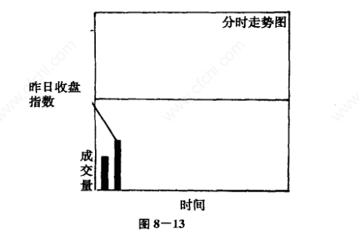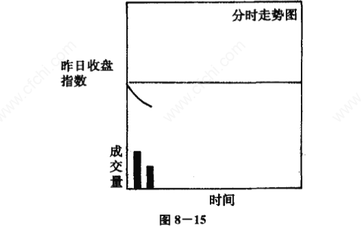2.如图8-13,当日,主力为了测试该日的卖压,利用开盘时抛出一笔筹码,将股价压了下来。如果随后出现的下跌超过主力预期幅度且成交量放大,则说明当日卖压重,散户不因价跌而惜售。