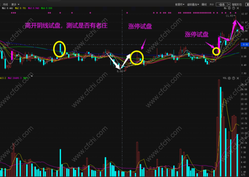 通过试盘,主力可以确定今天是否适合拉升,这是主力确保自己拉升成功的一种必要的准备工作。主力试盘时,主力的招式往往虚实不定,有时欲涨先跌,有时以退为进,走势扑朔迷离,让散户难辨真伪。